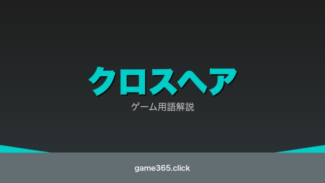 『クロスヘア』は「Crosshair」の略で、画面中央に表示される照準マーク。エイムの基準点となる重要なUI要素を意味するゲーム用語です。